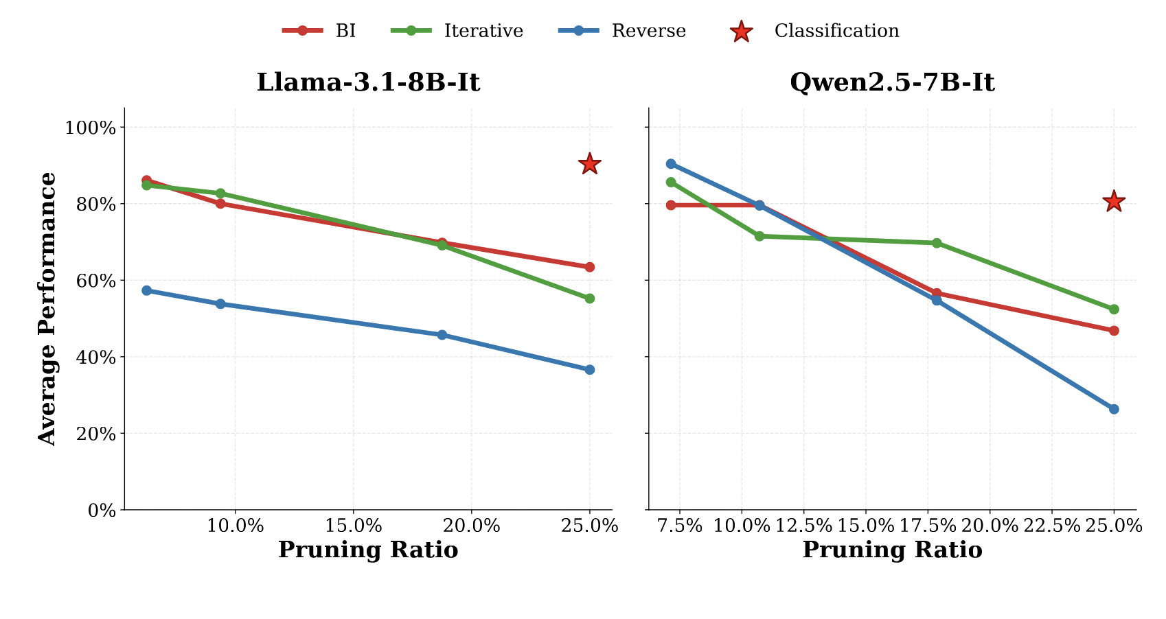 Existing layer pruning techniques often suffer severe degradation on generative reasoning
